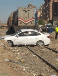 تصادم قطار بتاكسى عند مروره من معبر عشوائى