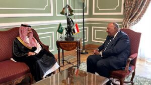 سامح شكري وزير الخارجية استقبل بمقر وزارة الخارجية الأمير فيصل بن فرحان وزير خارجية المملكة العربية السعودية،