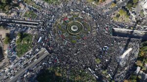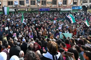 آلاف السوريين يتجمعون للاحتفال بسقوط نظام الأسد